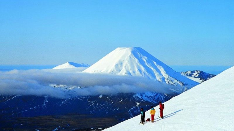 Manganui ski field sprawls over the eastern flanks of this silent sentinel, offering the sort of spine-tingling volcanic-slope skiing that pushes the pulse rate to the max. Exhilarating rapid descents of up to 1 km can be made from the top tow elevation of 1,680 metres. When conditions permit you can make the invigorating two hour climb to the summit crater, take in the astounding panoramic view to Tongariro National Park and then glissade 1,300 metres down through virgin snow – the ultimate alpine adventure.