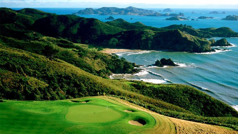 Waitangi offers equally breathtaking marine views encompassing the Bay of Islands. The 5,358 metre, par 70 course is an absolute pleasure to play, with stunning scenery around every fairway. The historic Treaty House and grounds are nearby.