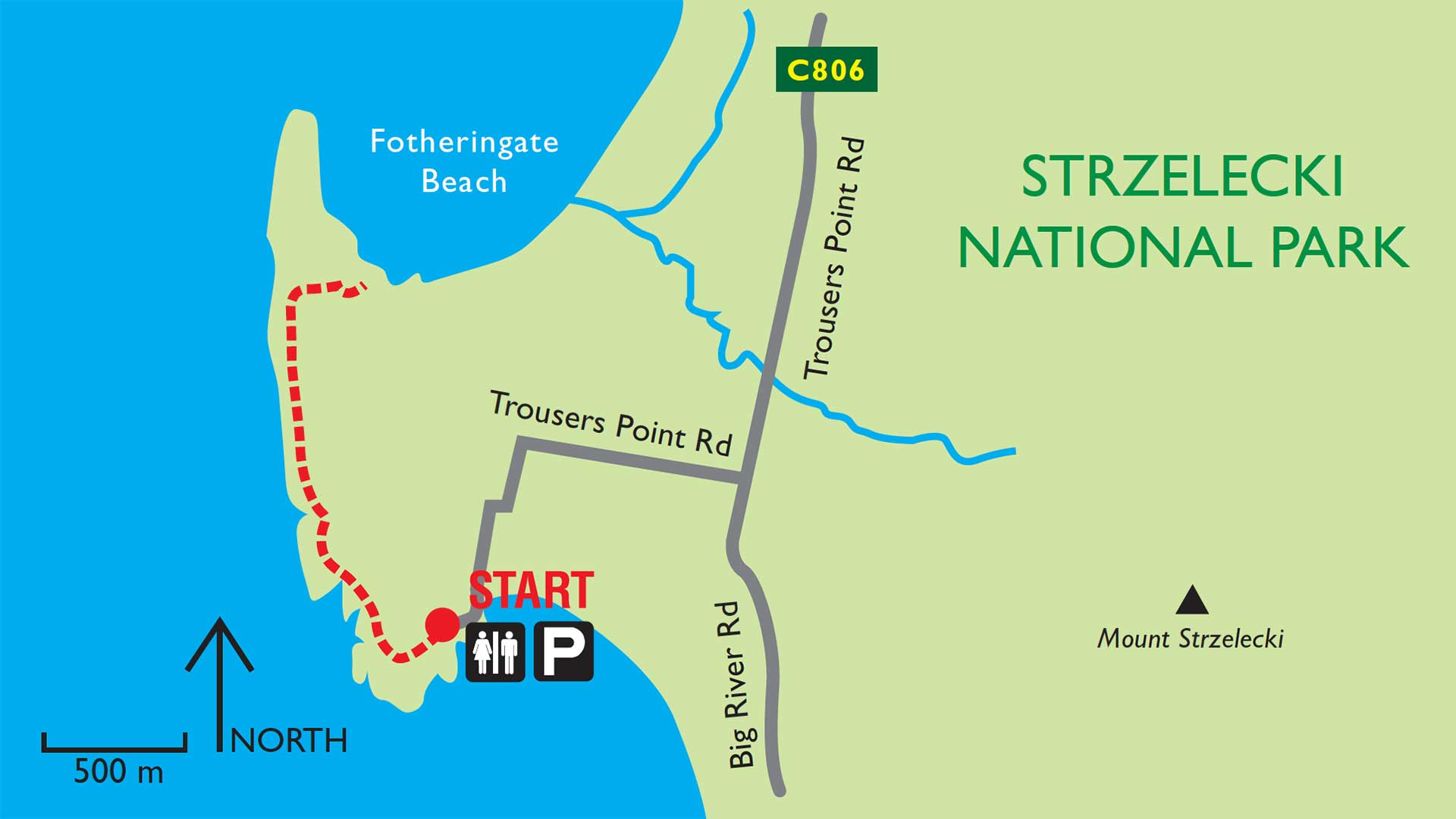Situated in Strzelecki National Park, the strangely named Trousers Point walk follows the coast from its start point at the end of Trousers Point Road and on to Fotheringate Beach about 2-km north.