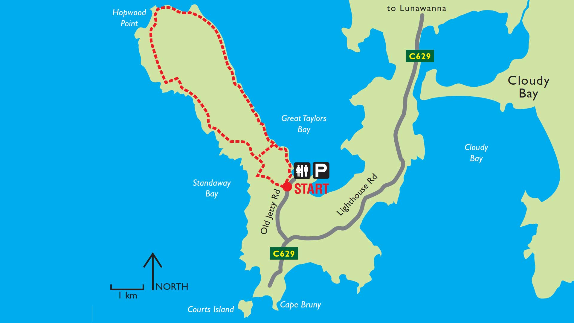 There is a vehicle ferry service available from Kettering. For timetable information please refer to the ‘Bruny Island Ferry Service’ in the Southern Tasmania phone book. Once on Bruny Island take road B66 to Alonnah and Lunawanna and then the road C629 towards Cape Bruny. Just before Cape Bruny you will see a sign that marks access to the Peninsula Walking Track. Long sections of road on Bruny Island are unsealed, however they are suitable for 2WD vehicles and bicycles. Please allow at least 1.25 hours drive time to reach the ferry terminal from the walking track.