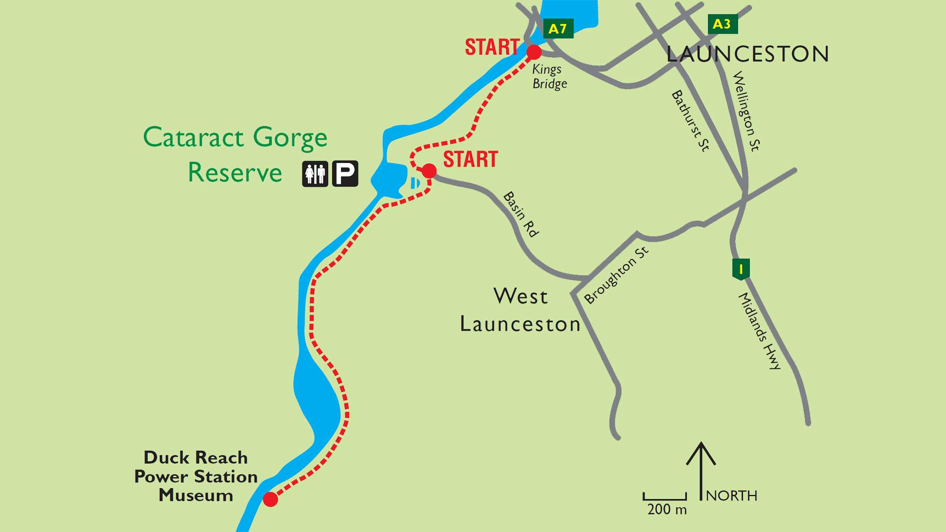 Walkers can start At Kings Bridge if they choose, or at the swing bridge at Cataract Gorge, off Basin Road, a few hundred metres further up the track.