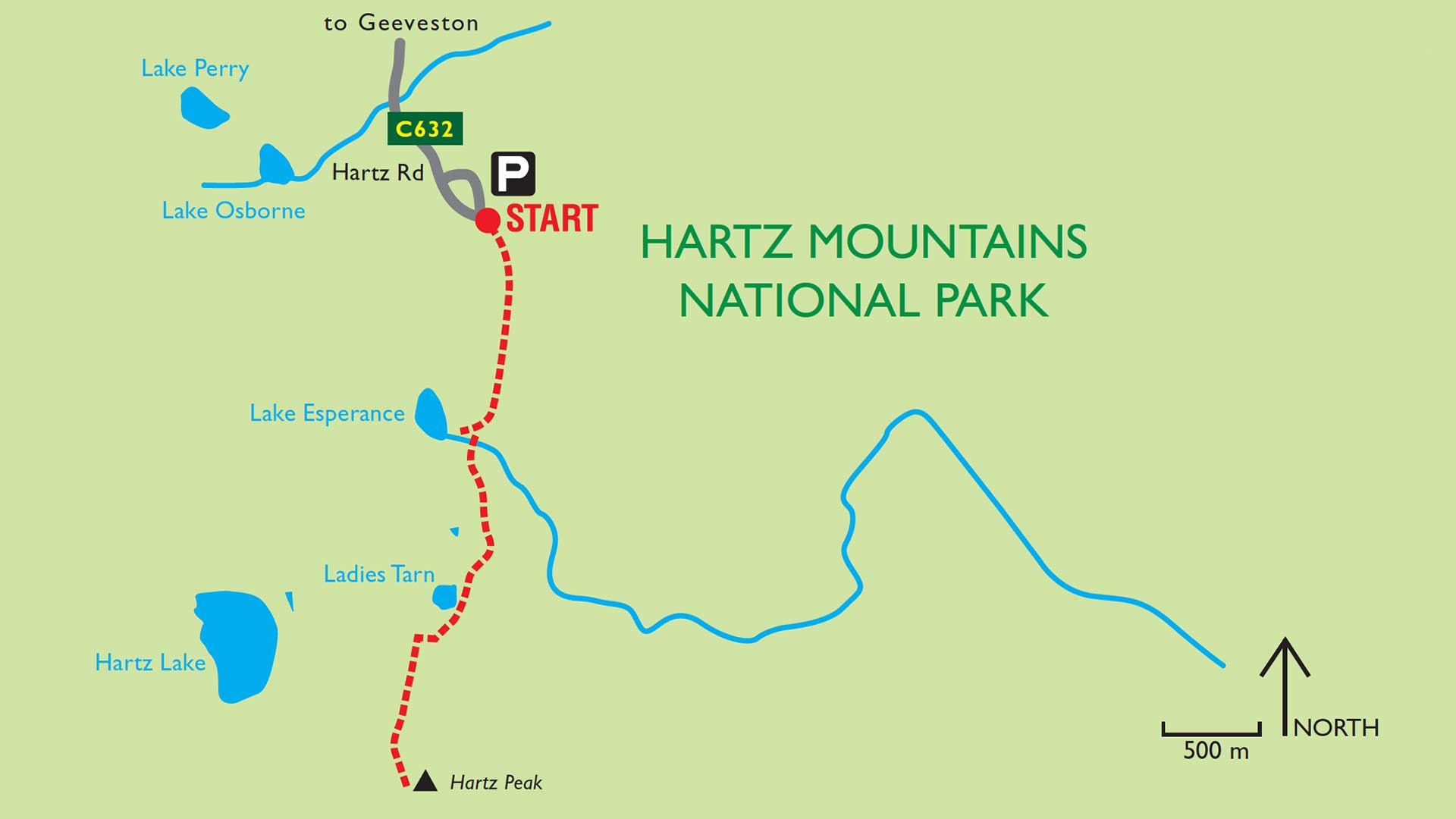Hartz Peak is located in the Hartz Mountains National Park, which is an area famous for views of remote mountain ranges as far as the coast.