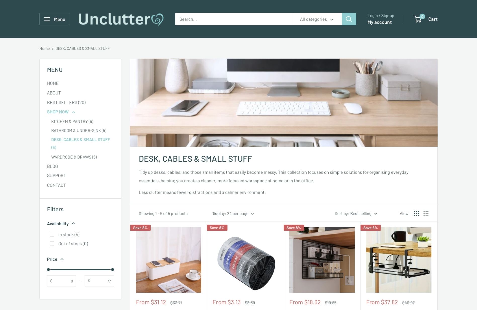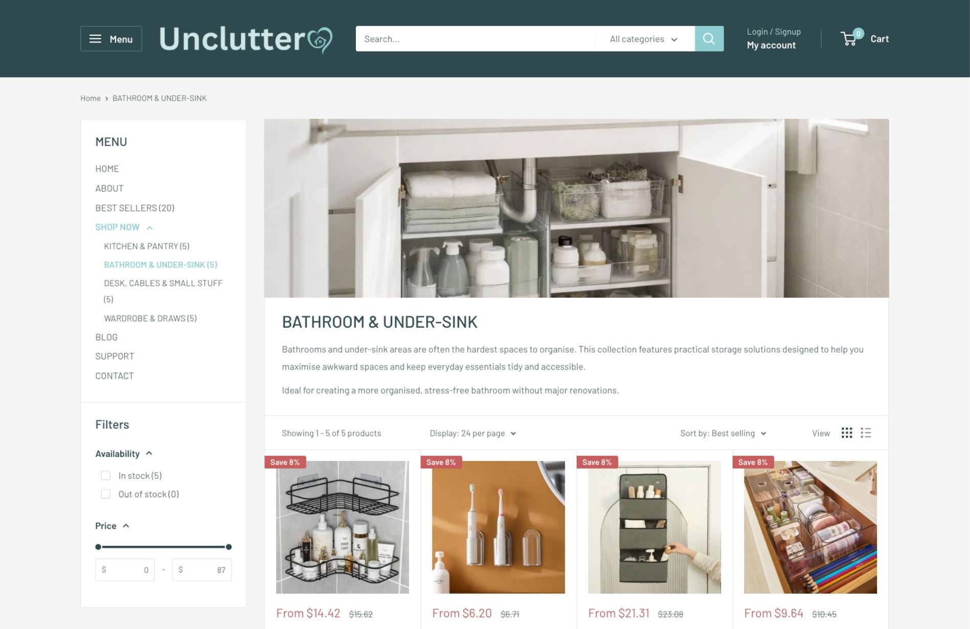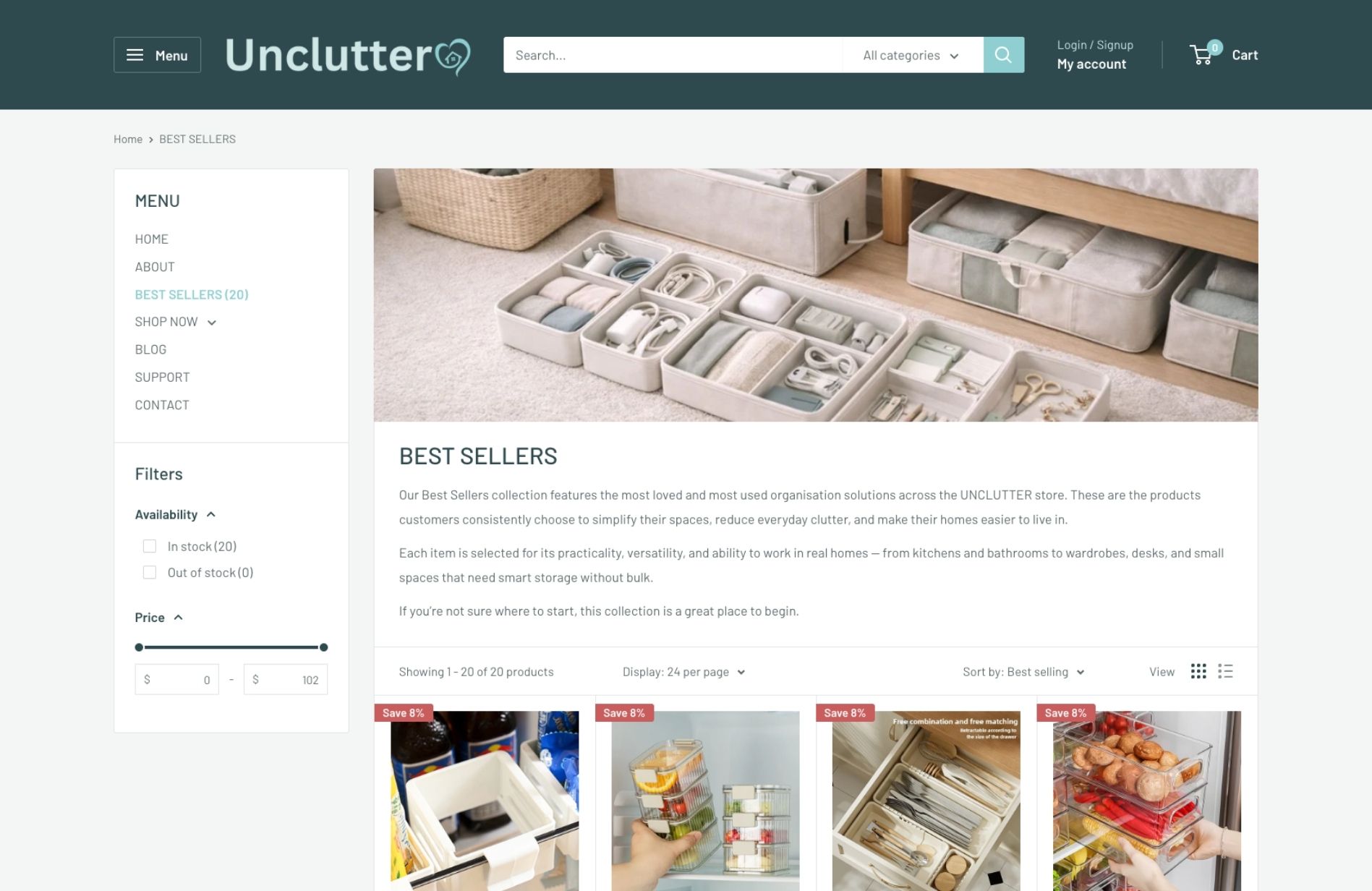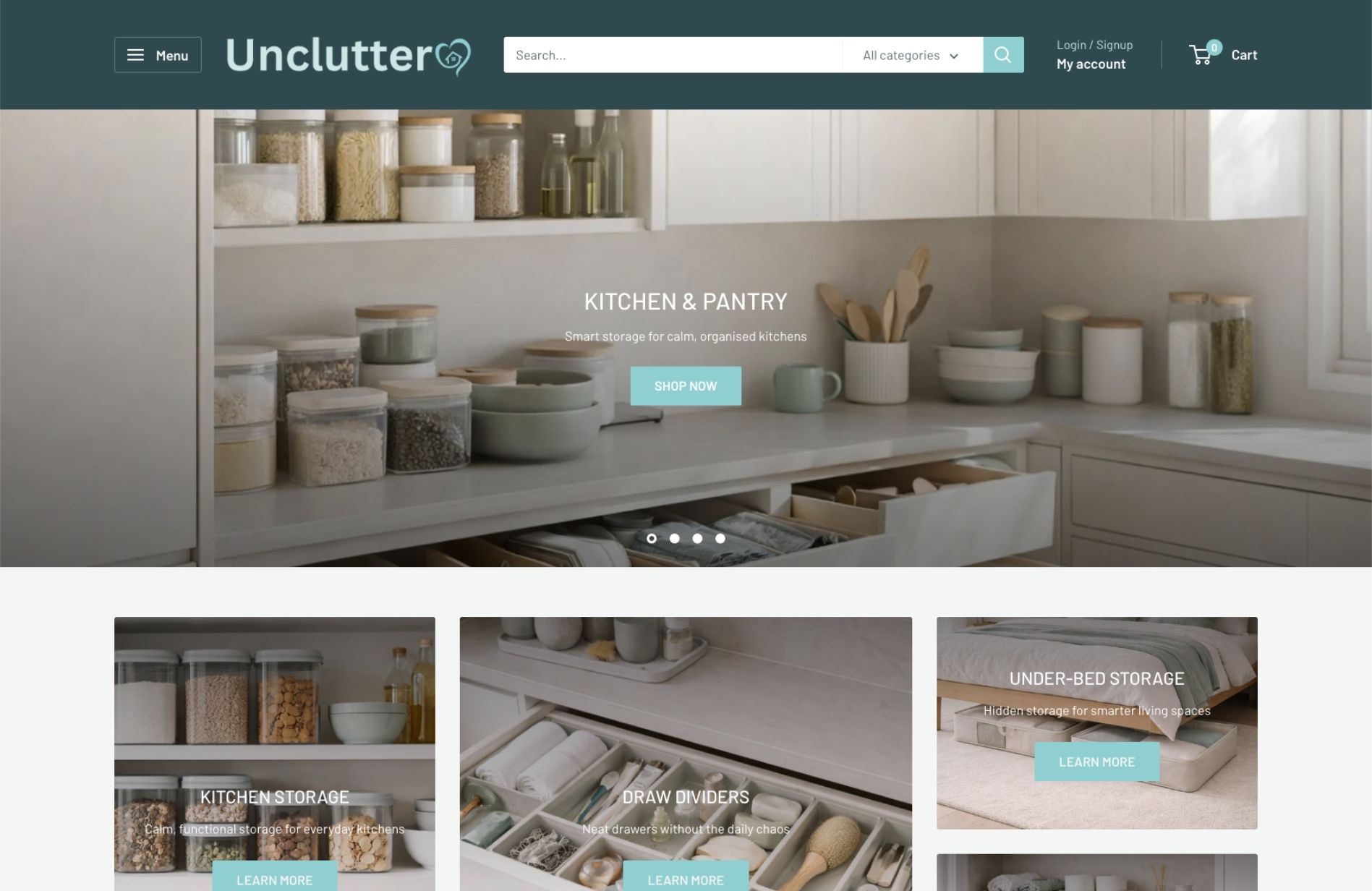 Built on Shopify and using a premium Shopify theme, UNCLUTTER presents a clean, modern design that reflects simplicity, trust, and usability — making it easy to market and easy for customers to buy from.