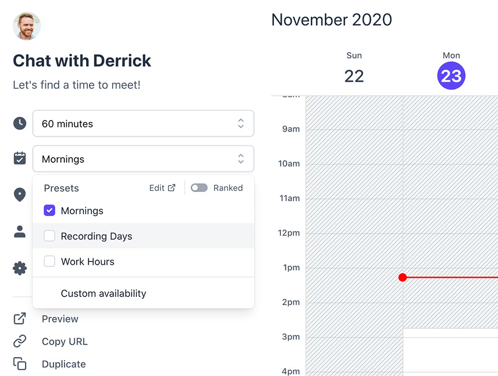 And while we’re at it, we’re also going to help you optimize your schedule by presenting preferred times, limiting meeting frequency, and customizing your availability on a per-link basis.