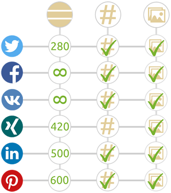 Every social network has different options for promoting your blog post. Blog2Social automatically converts your post into the best format for each network. A one-page preview allows you to optionally customize each post for cross-promoting, sharing, re-sharing or re-posting with individual comments, # hashtags, and @-mentions according to your preferences. Custom sharing with Blog2Social helps you to share your social media posts in an optimal format for each of your social networks.