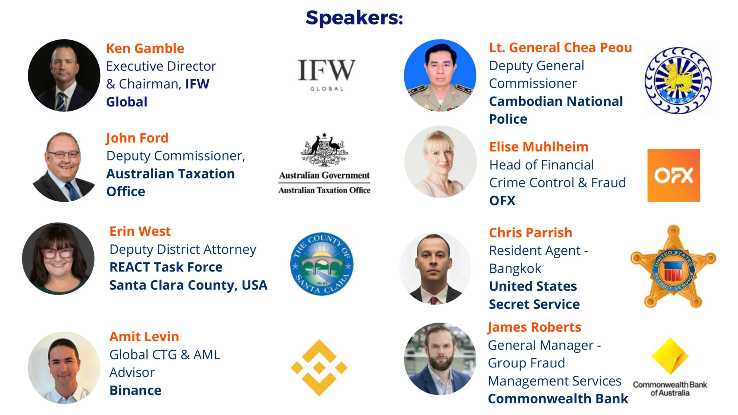 These experts, along with many others from major organizations like the Australian Taxation Office, Commonwealth Bank, OFX, and the United Nations Office on Drugs and Crime (UNODC), will provide unique insights into fighting financial crime from multiple perspectives.