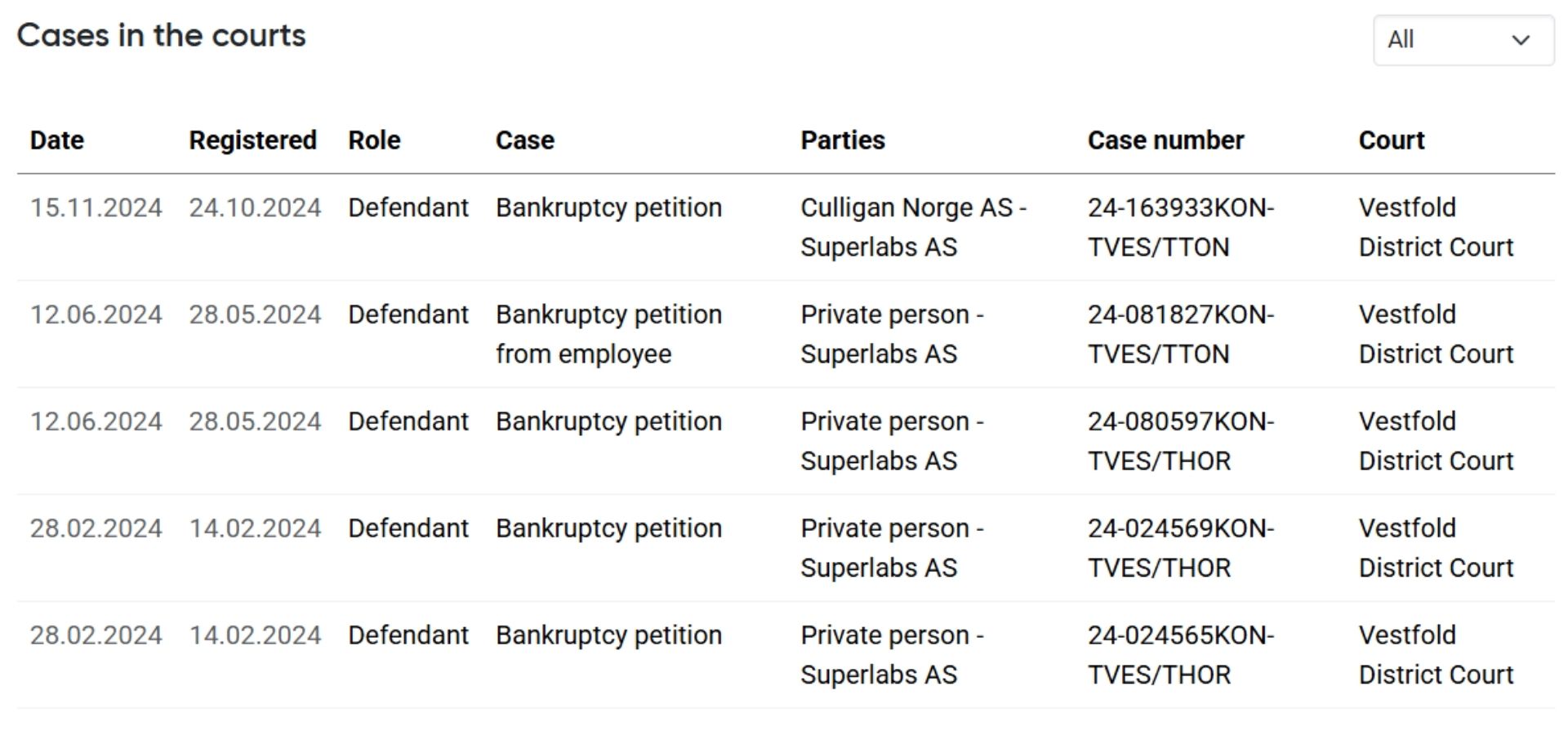 Let’s talk money. Superlabs AS is not just a rebrand — it’s a debt-ridden, collapsing entity hiding behind a fresh domain. Public records show: