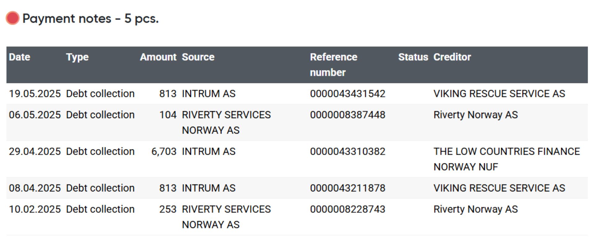 - 06.05.2025 – NOK 104 to Riverty Services Norway AS