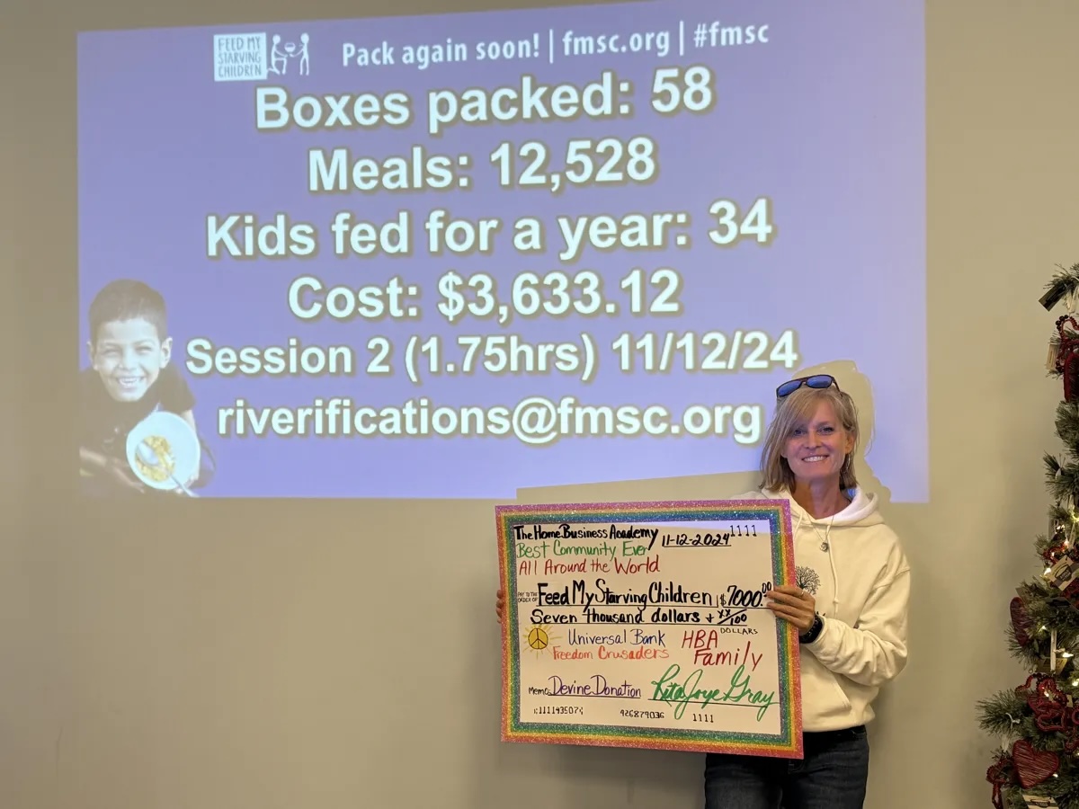 - A voicemail from Feed My Starving Children thanking The Home Business Academy for our contributions