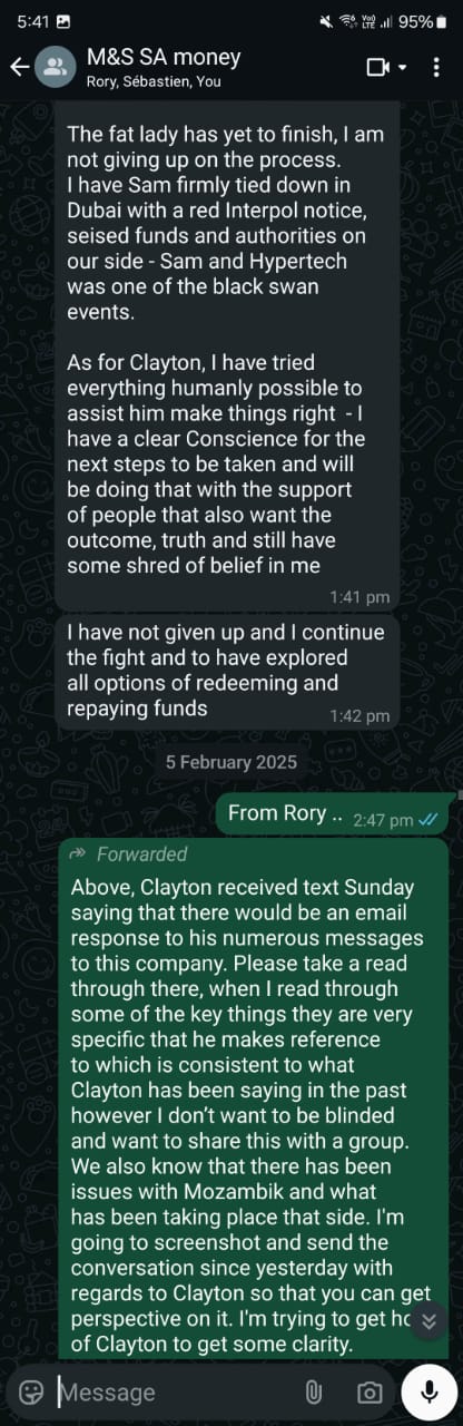 [15] In August 2024, Clayton sent a message saying, “We will celebrate on or before the 5th… we have done it… I hope you sleep like I will today, in peace.” Then, on 27 August, Rory says, “The money is there, no more stress.” He’s also “working on other things” and “working around the clock.” [16]