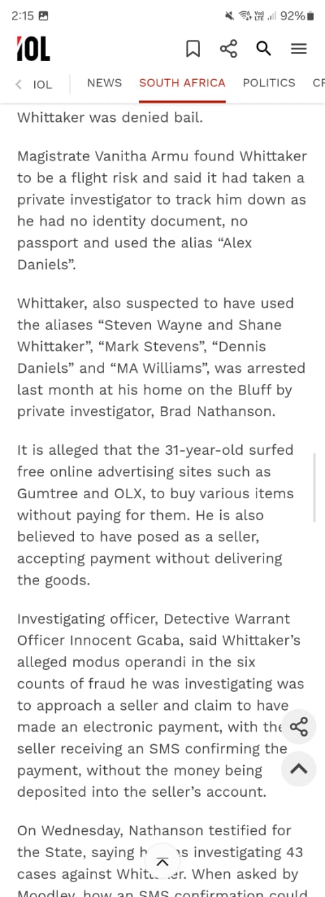It turns out he is a criminal in South Africa—this is not just a rumor. I found actual articles and one describing him as a menace to society. Back in 2015, he had nine outstanding warrants for his arrest. He is wanted for fraud, specifically for confirming payments that were never actually made. A private investigator stated, “I’ve never met anyone with such a low level of conscience and complete disrespect for the law.” [39] [40] [41] [42]