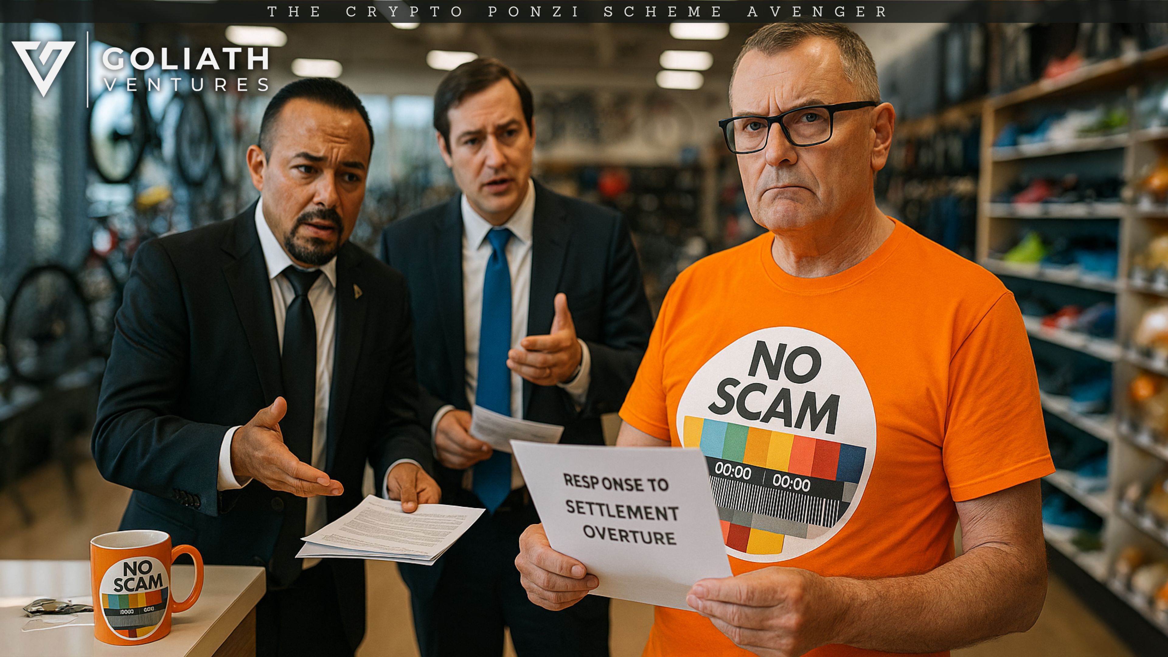 Our reply to Goliath Ventures’ lawyers challenges why they defend Chris Delgado amid allegations of securities fraud and running a crypto Ponzi scheme.