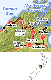 Today your self-drive tour takes you across the Cook Strait and onto the South Island of New Zealand. Arriving in Picton follow the scenic Queen Charlotte Drive route into Havelock and then inland to Nelson, at the top of the South Island.