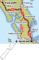 - 6 Day Itinerary (route 2): Auckland – Dargaville, Dargaville – Kaitaia, Kaitaia – Paihia, Paihia – Whangarei and Whangarei – Auckland
