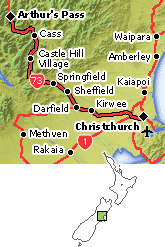 The route through Arthur’s Pass is memorable for its scenery as well as its breathtaking civil engineering. From the heights of Arthur’s Pass the road follows the Waimakariri and Bealey Rivers down to the skiing areas of Porter Heights and Craigieburn before turning into serene rural views and cute country townships and then onto the famous Canterbury Plains.