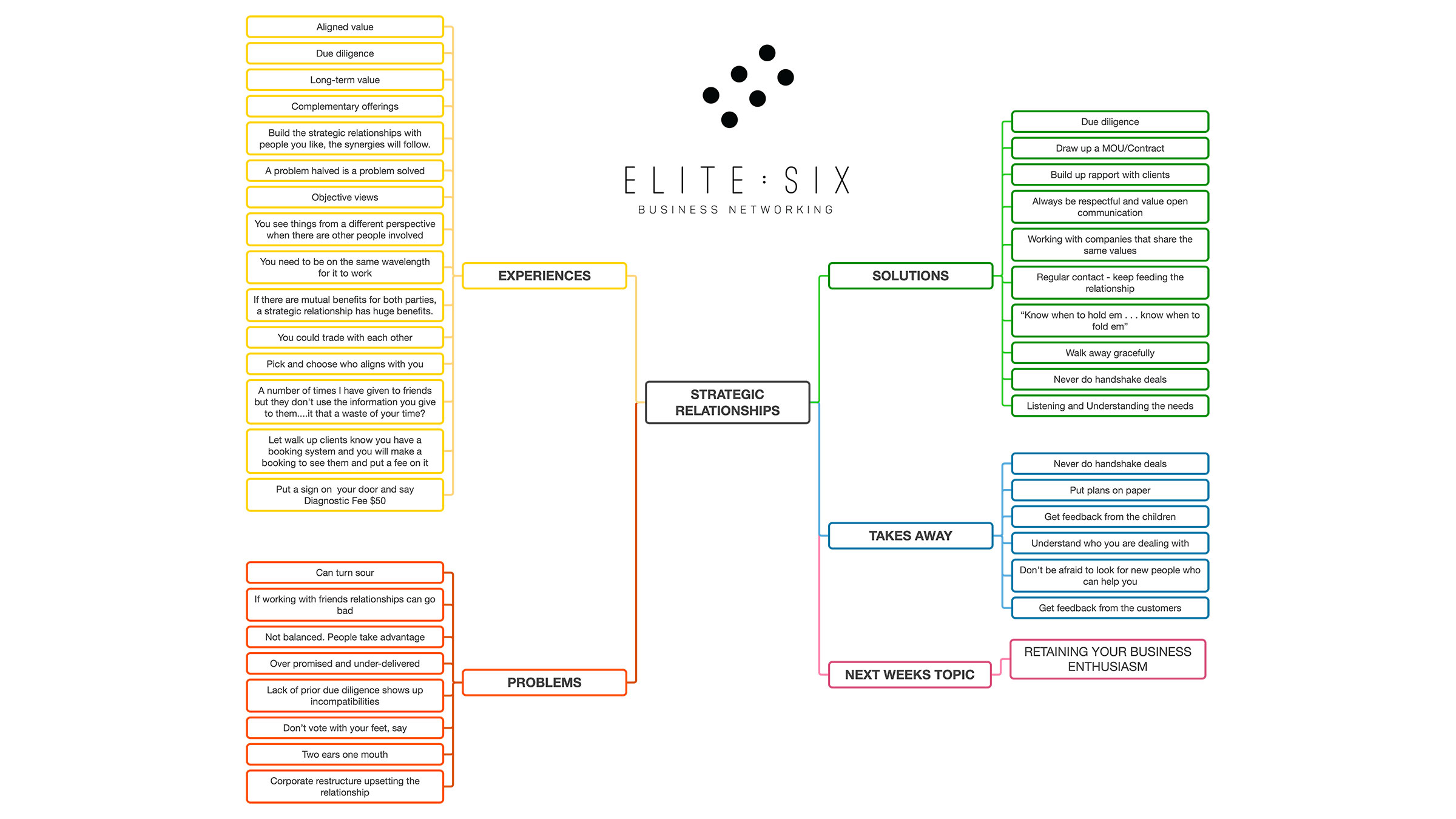 ELITE : SIX Think Tank meetings are discussed over ZOOM with our members every Friday at 9:30am - Think Tank Topic: Strategic Relationships