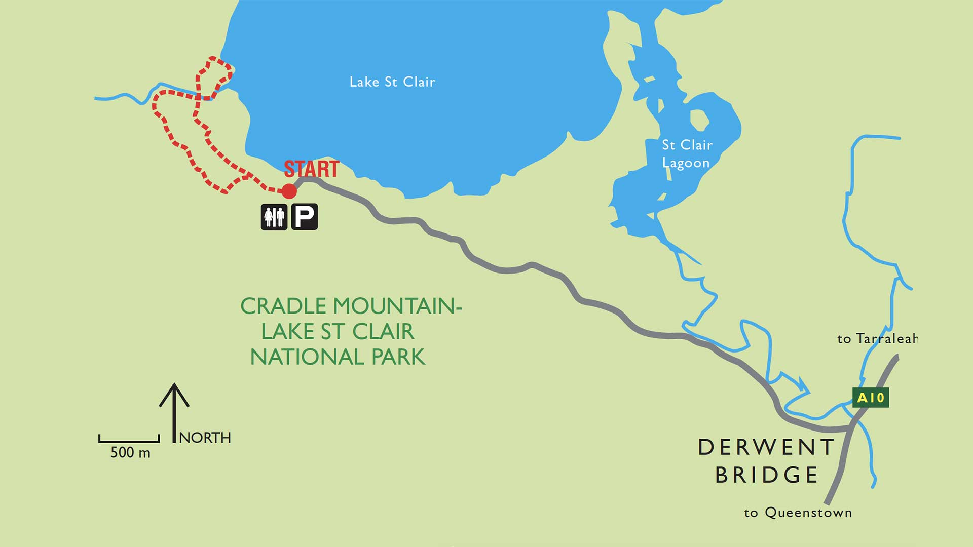 Lake St Clair is situated just a few kilometers off the Lyell Highway (A10), there is a choice of 3 short walks waiting to be enjoyed.